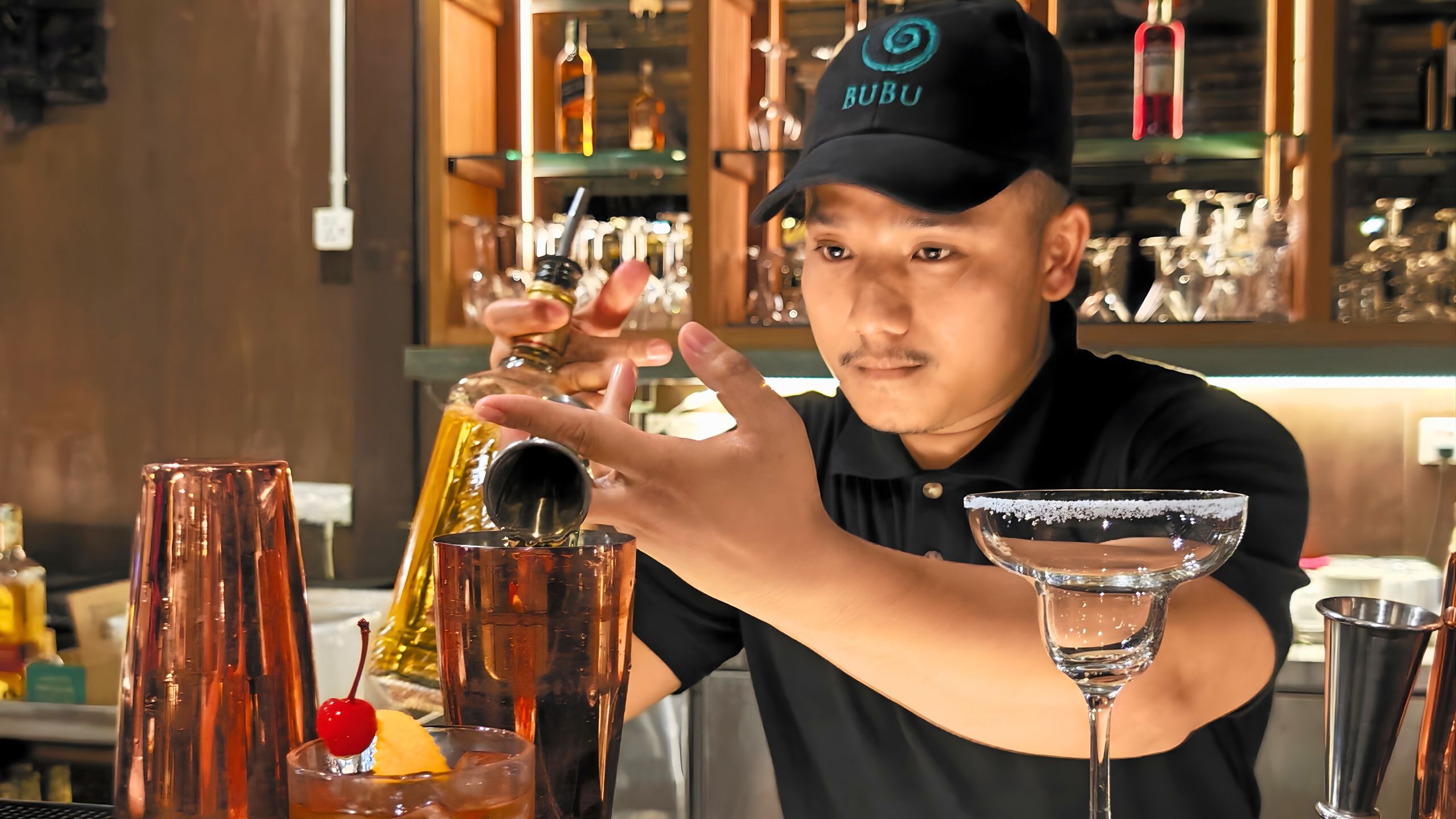 Disfruta de una comida junto a la playa en Santai con impresionantes vistas de Long Beach.