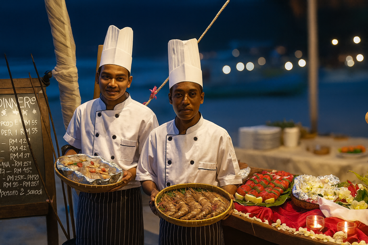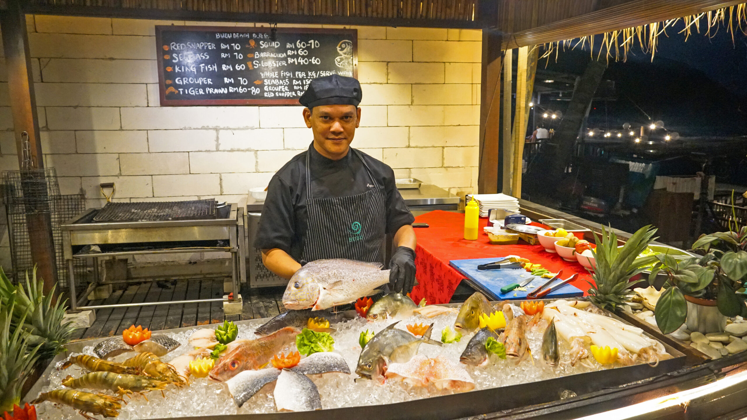 Mieux connu pour notre barbecue en bord de plage, permettez-nous de ravir vos papilles, des homards au poisson frais en passant par les faux-filet ; le tout frais grillé sur le grill. Ou choisissez parmi notre vaste menu à la carte, proposant un large éventail de menus internationaux.